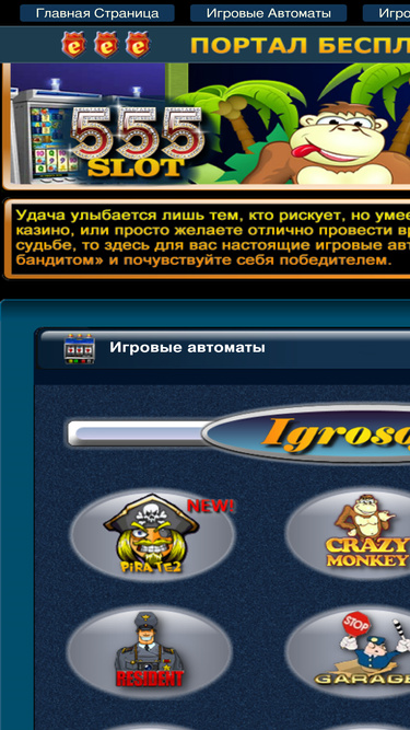 100%портал бесплатных игровых автоматов 555слот, здесь можно играть в игровые автоматы онлайн, бесплатно без регистрации, на популярных играх от игрософт, гаминатор, крейзи манки, скалолаз, клубнички, резидент, чукча, лягушки, бочки, гараж, гном, крышки, ешки.в азартные игры игровые автоматы , можно играть бесплатно онлайн.