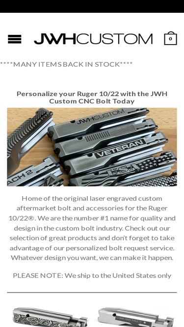 88%Brand new JWH Custom charging handle for your .22LR bolt. This is brand new and of top quality. A Beautiful example of what we offer. CNC Stainless.