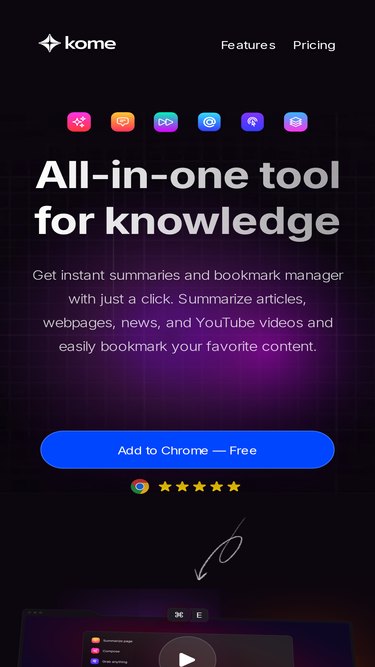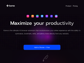 68%kome is the ultimate ai browser extension with the ability to summarize news, articles, and youtube videos, and bookmark content from any website.