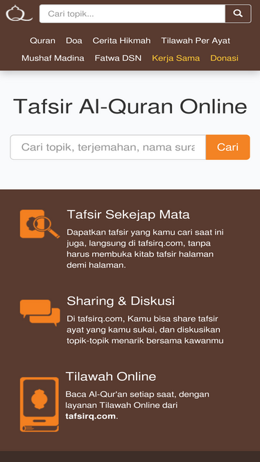 90%tafsiralquran.id adalah website yang berusaha menghadirkan dan membumikan Alquran sebagai pijakan hidup manusia yang menyentuh segala aspek.