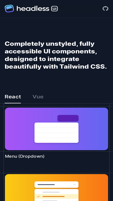 87%Completely unstyled, fully accessible UI components, designed to integrate beautifully with Tailwind CSS.