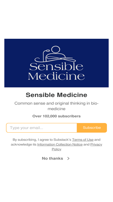 76%Common sense and original thinking in bio-medicine. Click to read Sensible Medicine, a Substack publication with hundreds of thousands of subscribers.