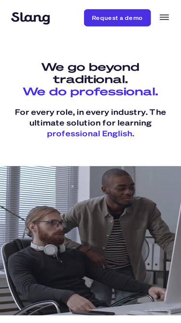 96%slang is the largest platform for learning professional and specialized english. we help people, companies, and universities go beyond basic english.