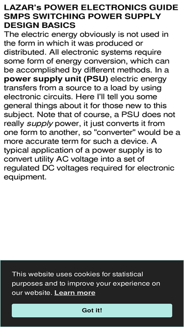 95%a guide to smps switching power supply for designers, hobbyists and buyers. what is smps and how it works. circuit design tutorial, schematics, topologies, pcb design rules, magnetics, power electronics and electrical engineering reference info.