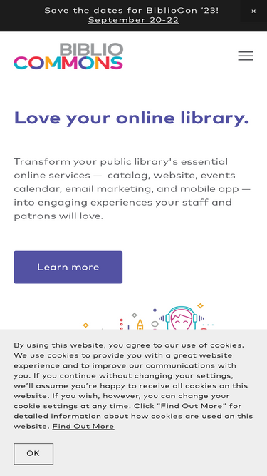 88%Subscribe to BiblioCommons to transform your public library’s online catalog, mobile app, website, events manager, and email marketing into engaging experiences your staff and patrons will love.