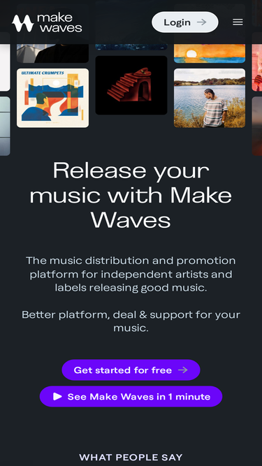 81%Make Waves is an easy-to-use music distribution and promotion platform for independent artists. Release your tracks on Spotify, Apple Music, YouTube, TikTok & many more. Access pro features for free, maintain 100% of your rights, and get seamless payouts. Start sharing your music today!