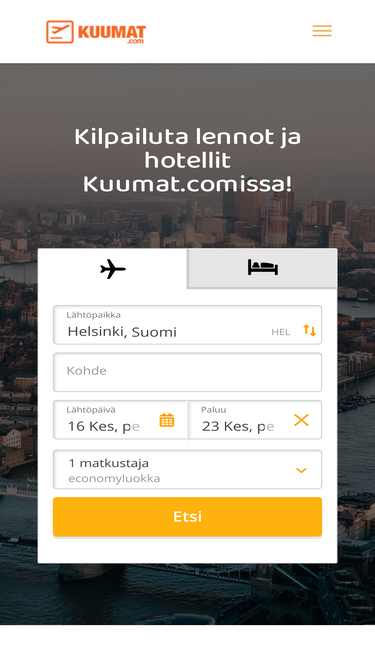Kuumat.com tarjoaa parhaat matkatarjoukset ja äkkilähdöt. Vertaile ja löydä edulliset lennot, hotellit, risteilyt ja lomamatkat helposti samasta paikasta.