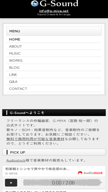 98%G-Soundでは楽曲制作をはじめとした音楽制作のお仕事を承っております。 また、無料で商用利用可能な音楽素材を公開しています。ゲームや動画、PV等ご自由にお使いください。