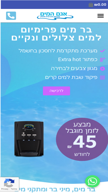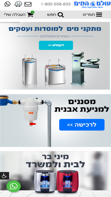 89%אגם המים מציעה מגוון מיני ברים לבית ולעסקים. באתרינו תמצאו גם מערכות תומכות כגון מסננים וקולרים למוסדות ושירותי טכנאים לברי מים.