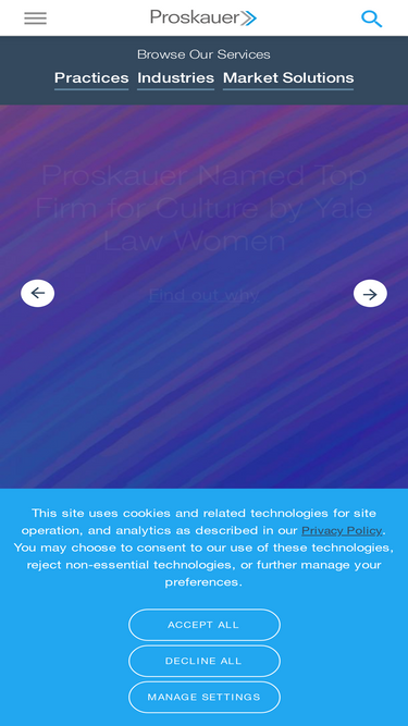72%Proskauer is a recognized leader in privacy and cybersecurity law. Our practice leaders have specialized in this area for more than twenty years, as far back as the practice area has existed. We assist clients in all industries around the world with the "A to Z" of privacy and data security-rela...