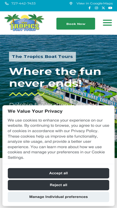 93%Make the most of your time in Clearwater Beach by taking a boat tour! Enjoy breathtaking views, spot dolphins, celebrate the sunset, and make memories that will last a lifetime.