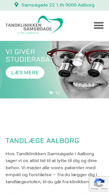 80%Hos Tandlægeklinikken i Samsøgade i Aalborg bliver du altid mødt med høj faglighed, smil og godt humør. Studierabat? Læs mere på vores hjemmeside!