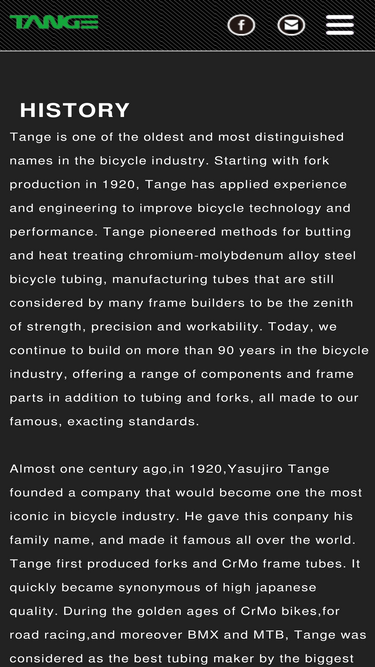 tange is one of the oldest and most distinguished names in the bicycle industry. starting with fork production in 1920, tange has applied experience and engineering to improve bicycle technology and performance. tange pioneered methods for butting and heat treating chromium-molybdenum alloy steel bicycle tubing, manufacturing tubes that are still considered by many frame builders to be the zenith of strength, precision and workability. today, we continue to build on more than 90 years in the bicycle industry, offering a range of components and frame parts in addition to tubing and forks, all made to our famous, exacting standards.