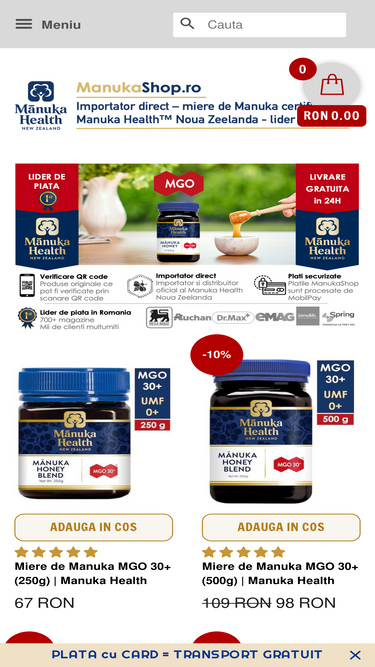 79%Ce este Mierea de Manuka? Aici mai multe detalii despre mierea de Manuka de la Manuka Health Noua Zeelanda. Manukashop.ro este importator direct si astfel sunteti sigur de calitatea si originalitatea produselor. --------------- --------------- ---------------