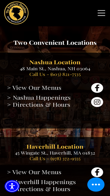 The Peddler's Daughter - Irish Restaurant & Pub - Two Convenient Locations in Nashua, NH & Haverhill, MA. We hope to see you soon!