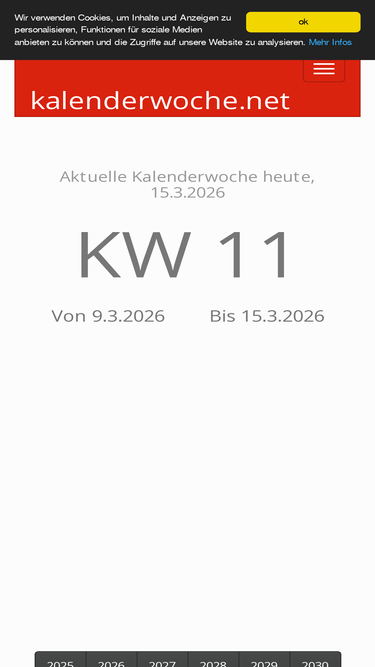 kalenderwoche.net zeigt die aktuelle kalenderwoche für das aktuelle datum an.