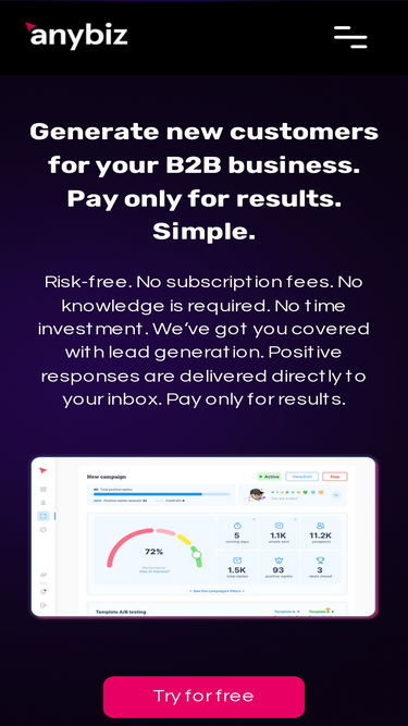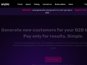 60%Get in touch with AnyBiz.io for AI-driven B2B lead generation solutions. Our team is ready to help you enhance your sales strategies.