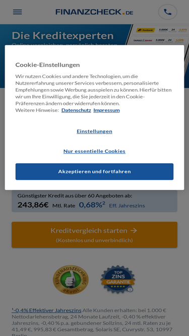 100%Deutschlands günstiger Onlinekredit im TÜV geprüften Kreditvergleich von FINANZCHECK.de