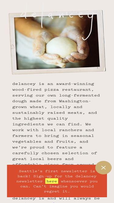 100%Delancey is the wood-fire pizza project of Brandon Pettit, earnestly and abidingly serving up the best pies this side of anything.