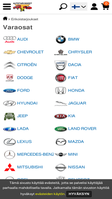 68%tehdaskorjatut ja käytetyt moottorit, autopeitteet, performance-jarrulevyt, madallusjouset, alustasarjat, madallusjouset ja paljon muuta.