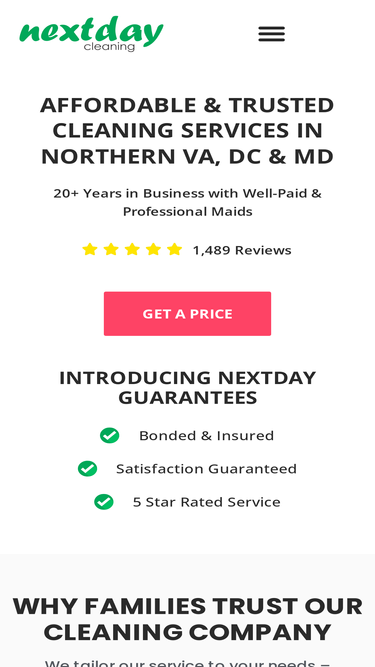 Looking for reliable cleaning in Northern VA, DC, or MD? Get trusted, affordable maid and house cleaning with same-day service from Next Day Cleaning.