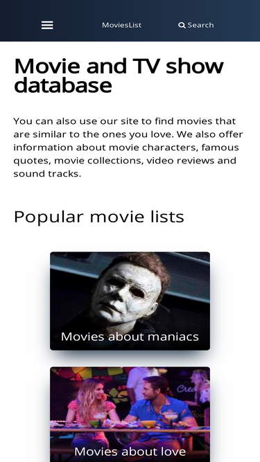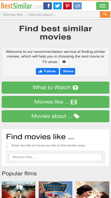 90%You can also use our site to find movies that are similar to the ones you love. We also offer information about movie characters, famous quotes, movie collections, video reviews and sound tracks.