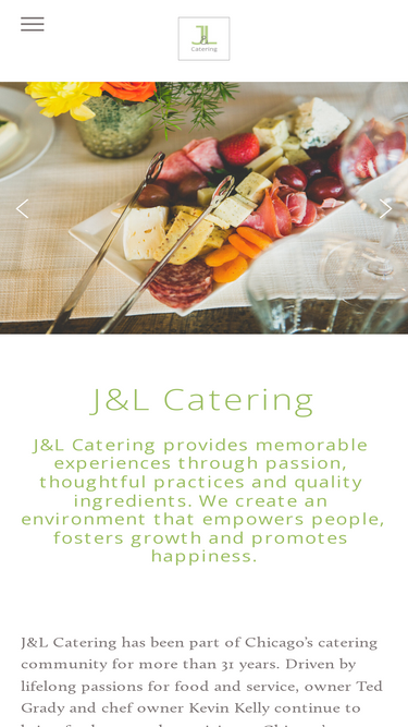 100%J&L Catering has been part of Chicago’s Goose Island neighborhood since 1989. Our goal is to create a custom catering experience for our clients.
