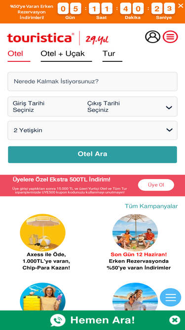 85%tatil, otel, kültür turu, yurtdışı ve gemi turları en uygun fiyat ve taksit seçenekleri ile touristica'da! şimdi rezervasyon yaptırın fırsatları kaçırmayın!