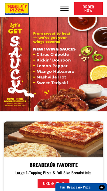 97%Order Breadeaux Pizza online for delivery or pick-up. See our coupons page for current deals and discounts.
