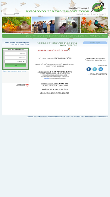 אתר הצפרות הישראלי מציע מידע רחב על הצפרות. המידע באתר כולל כתבות על צפרות תמונות מרשימות, מפות עולמיות ומידע נרחב על כל מגוון הציפורים