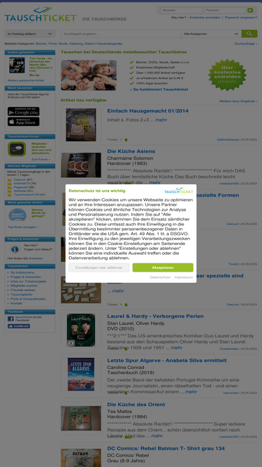 100%mach mit und tausche bücher, filme, kleider, spiele und vieles mehr. die tauschbörse mit über 1.000.000 verfügbaren artikeln.