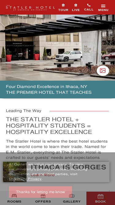 Enjoy luxurious stays, restaurants, elegant event venues, special offers, and world-class hospitality at our landmark Ithaca, NY hotel at Cornell University.