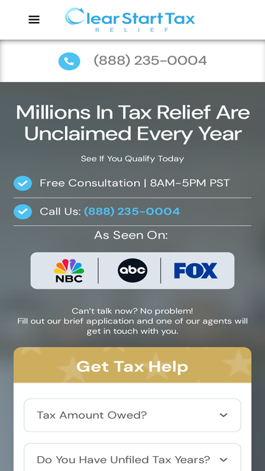 82%Clear Start Tax Relief are tax relief experts in identifying and resolving just about any IRS and state back tax issue. Get your free consultation today.