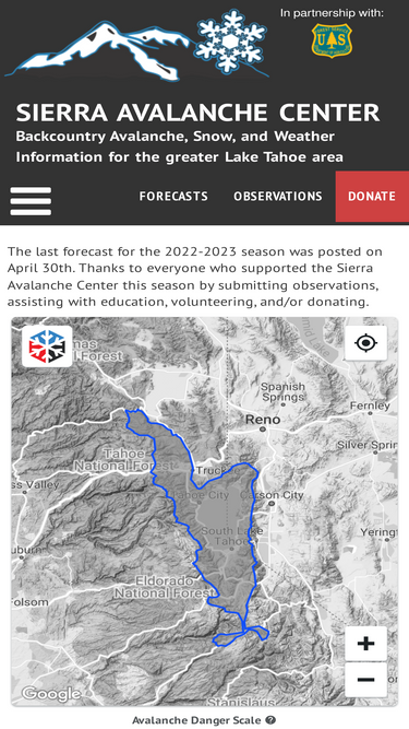 100%Backcountry Avalanche, Snow, and Weather Information for the greater Lake Tahoe area