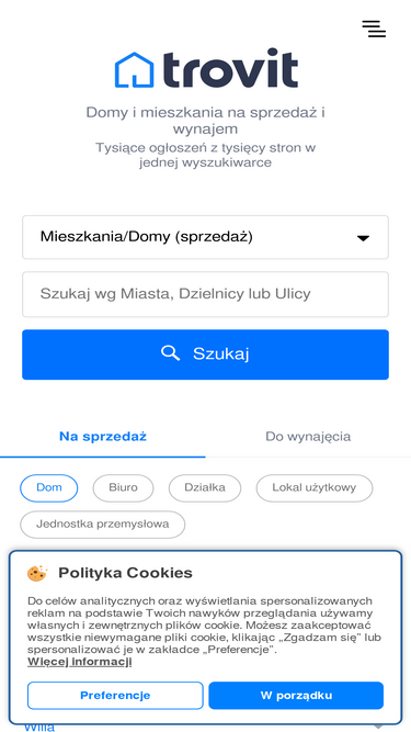 100%Wyszukiwarka mieszkań, domów, pokoi, działek, biur i lokali do wynajęcia i na sprzedaż w Polsce. Mieszkania, domy, pokoje, działki, biura i lokale do wynajęcia i na sprzedaż.