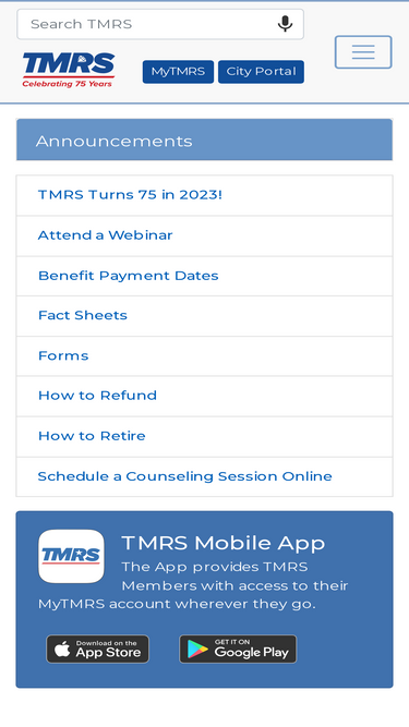 TMRS is a statewide retirement system that provides retirement, disability, and survivor benefits for employees of participating Texas cities.