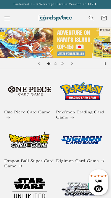92%Pokémon, One Piece, Union Arena, Naruto, Dragon Ball und viele weitere TCG Booster, Displays und Zubehör günstig kaufen. Versand ausschließlich mit DHL/Deutsche Post. Schnell und zuverlässig.
