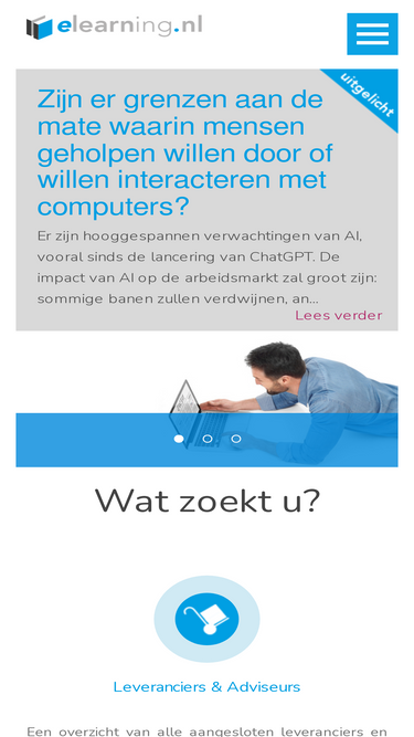 82%e-learning.nl informeert u duidelijk en snel wat e-learning voor u en uw organisatie kan betekenen. e-learning.nl is een onafhankelijke marktplaats met als doel vraag en aanbod op elkaar af te stemmen. we hopen dat u op onze marktplaats snel de juiste informatie kunt vinden. alle informatie op deze website wordt u gratis aangeboden waarbij het aanbod doorlopend wordt geactualiseerd.