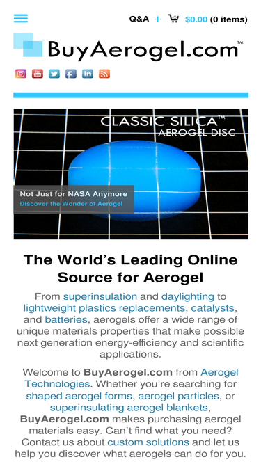 90%Airloy® X110 series materials from Aerogel Technologies are the world's first commercially available polyimide aerogels. Airloy X116 materials are mechanically robust aerogels with the strength to stand up to real-world applications. Now available in large panels (30 cm x 30 cm x 0.5 cm), Airloy X116 comes in densities up to fifteen times lighter than plastics and is a great alternative to Airloy X103 where higher temperatures are required. Does not burn, smoke, or drip upon exposure to flame. Designed for aviation and automotive applications. Dust-free. Machinable and adherable. Thermally superinsulating with a conductivity between classic silica aerogels and Styrofoam®. Maximum operating temperature is ~150°C. Color is yellow. Note Airloy X116 will undergo a one-time volume reduction upon exposure to temperatures above about 100°C and so part annealing is suggested. Made with NASA technology. Download the material SDS here. Airloy X116 Tiles are also available for smaller projects and low-cost materials evaluation. Airloy X116 reference properties are listed below: Density Class Density Compressive Strengtha Compressive Modulusa Operating Temperaturea Thermal Conductivitya L 0.09 ± 0.02 g/cc 0.4 MPa 11 MPa 400°C 29 mW/m-K aApproximate values. For reference only. Additional densities and sizes coming soon and available by request. Please see our patent and trademark information page for information for patents protecting this product.