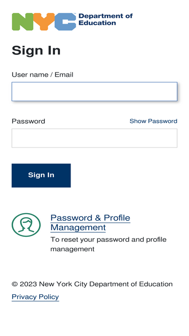 77%sign in page used by multiple nyc department of education websites for logging in.