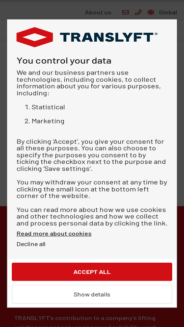 83%welcome to translyft. we have 50 years of experience with scissor lifts and lifting solutions for any industry and production lines.
