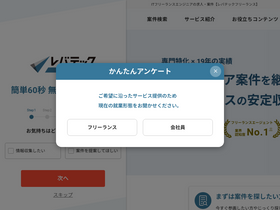 【業界認知度no.1】レバテックフリーランスはit・web業界のフリーランスエンジニア求人・案件募集情報サイトです。言語や単価など幅広い条件から求人・案件を検索できます。高単価の新規案件を数多くご提供しており、参画後のサポート体制も万全です。案件をお探しの方はレバテックフリーランスにお任せください。