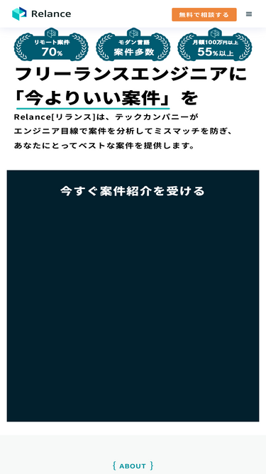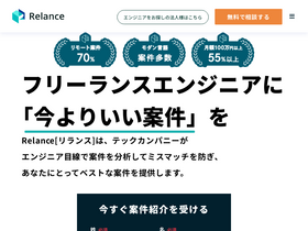 84%Relance[リランス]は、テックカンパニーが エンジニア目線で案件を分析してミスマッチを防ぎ、あなたにとってベストな案件を提供します。