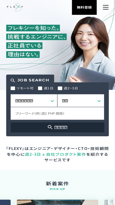 97%FLEXYの「案件検索」のページです。フリーランスや副業のエンジニア、CTO、技術顧問の仕事のご紹介なら「FLEXY」(フレキシー)。CTOインタビューやCTOイベントレポートなど最先端の技術やIT企業の情報がわかります。エンジニアだけでなくデザイナー/ディレクター/マーケティングの案件もありますのでお気軽にご相談ください。