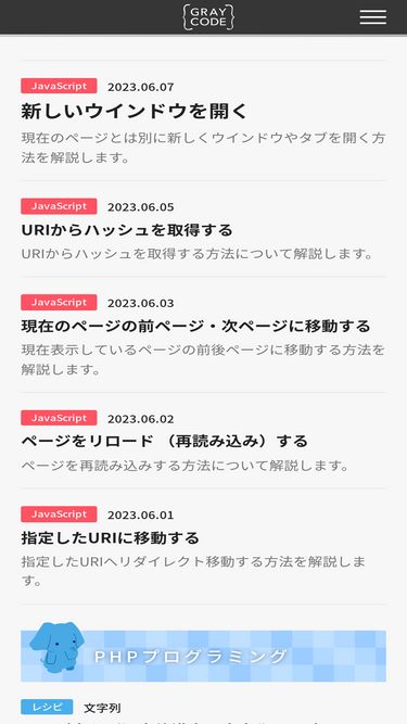 58%GRAYCODEは、プログラミング言語「PHP」、WordPress、HTML&CSSについて、すぐに役立つ情報や学習向けのコンテンツを提供します。