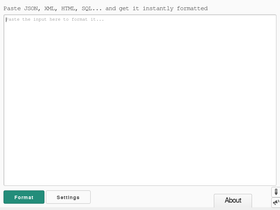 universal online formatter for (json, xml, html, sql): what you paste is immediately beautified with syntax highlighting, minimap, search tools, …