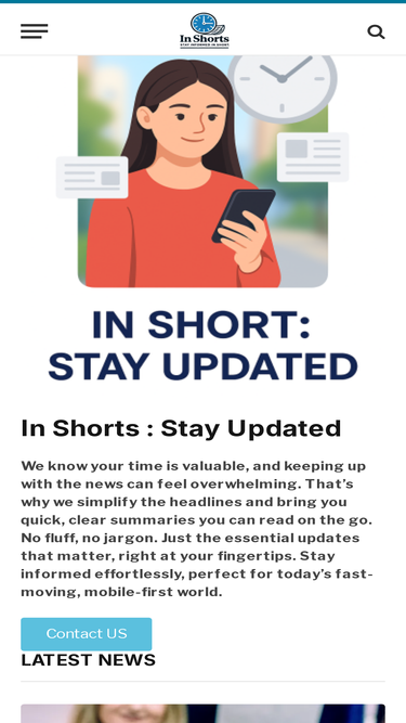 86%In Shorts : Stay Updated We know your time is valuable, and keeping up with the news can feel overwhelming. That’s why we simplify the headlines and bring you quick, clear summaries you can read on the go. No fluff, no jargon. Just the essential updates that matter, right at your fingertips. Stay informed effortlessly,