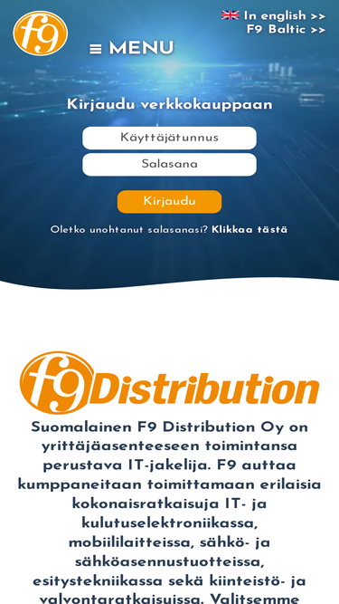 92%f9 distribution on suomalainen it- ja kodinelektroniikkajakelija, jonka tuotevalikoima koostuu johtavien tietotekniikka-, viihde-elektroniikka- ja kodinkonevalmistajien laatutuotteista.