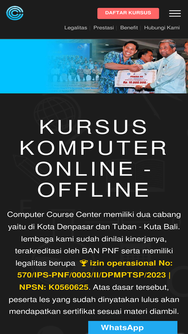 100%computer course center tempat kursus, les, sekolah komputer berkualitas di bali. belajar bisa secara online atau offline baik privat maupun kelas, dimana setiap lulusan akan dapat sertifikat. materi kursus: komputer administrasi, desain grafis, animasi editing video, 2d, 3d, sketchup, autocad, web design dan seo, cms wordpress, web programming, internet marketing