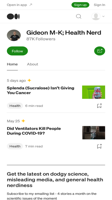 71%Read writing from Gideon M-K; Health Nerd on Medium. Epidemiologist. Writer. Podcaster. Twitter https://twitter.com/GidMK Threads https://www.threads.net/@gidmkhealthnerd Email gidmk.healthnerd@gmail.com